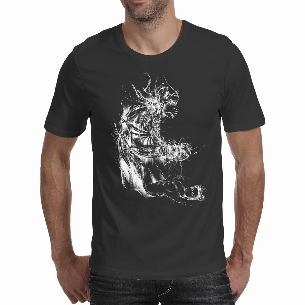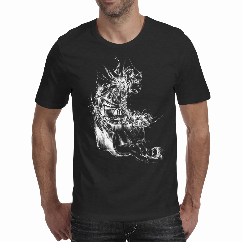 Unleash your spiritual side with our Black Mens ECTOPLASM T-Shirt. Featuring a hand-drawn image of feminine and Native American energy intertwined, this mysterious design is sure to turn heads. Made with high-quality A3 printing, this t-shirt is both comfortable and fashionable. Get yours today and express your unique style.